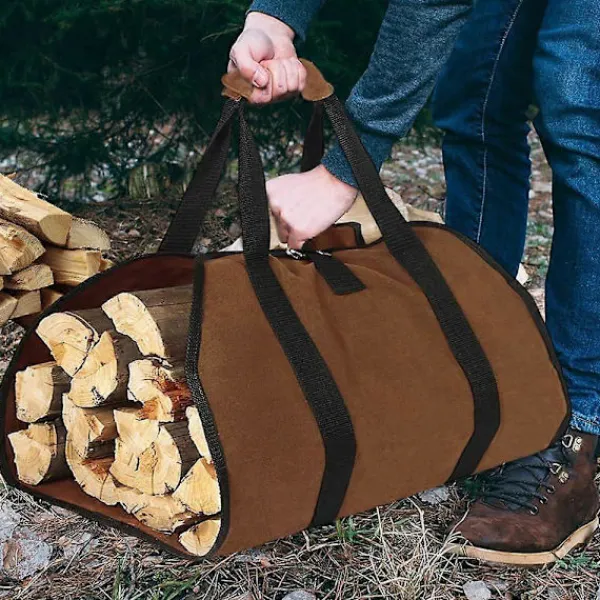 Bekväm att Använda: Våra bärväskor i canvas är utrustade med förstärkta och vadderade handtag för ett bekvämt grepp som skyddar dina händer när det finns mycket ved i väskan. Med en justerbar mittrem för att säkra och dra åt stockarna under lastning. Handtagsremmen går runt hela bärväskan, vilket gör att den kan hantera tunga laster utan att gå sönder.