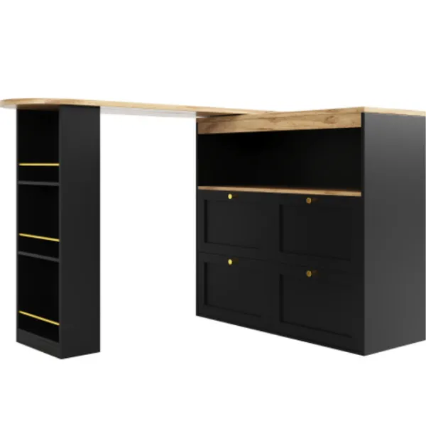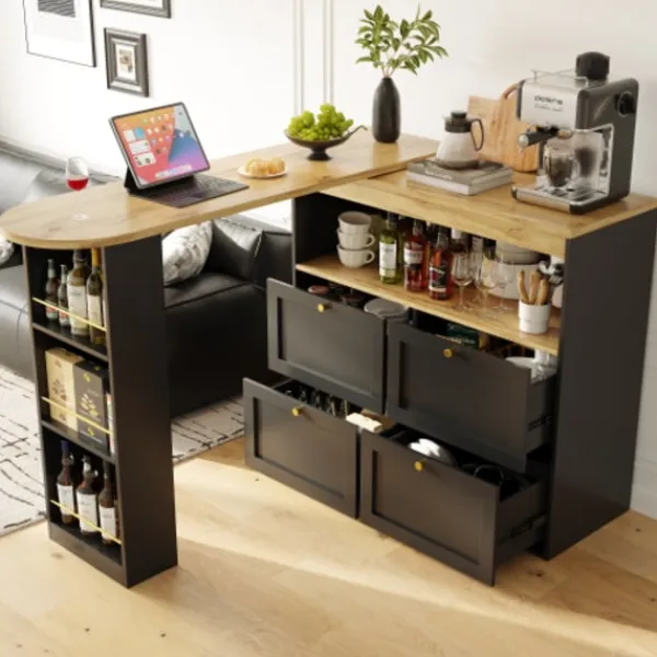 3. Flerskiktade sidohyllor och lådor med stor kapacitet, flexibla förvaringslösningar. Den öppna, roterande sidohyllan ger bekvämt utrymme för visning och åtkomst och är idealisk för förvaring av ofta använda föremål. Skåpet är utrustat med fyra lådor med stor kapacitet, vilket ger ännu fler alternativ för organiserad förvaring. Olika förvaringsutrymmen gör det enkelt att hålla ditt utrymme snyggt och organiserat.