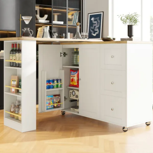 2. Utrymmesoptimering: De tre sidohyllorna och snackshyllan på ena sidan skapar smart ytterligare förvaringsutrymme. Kombinerat med de praktiska hjulen blir det ännu enklare att komma åt snacks, vilket enkelt tillgodoser dina dagliga behov.