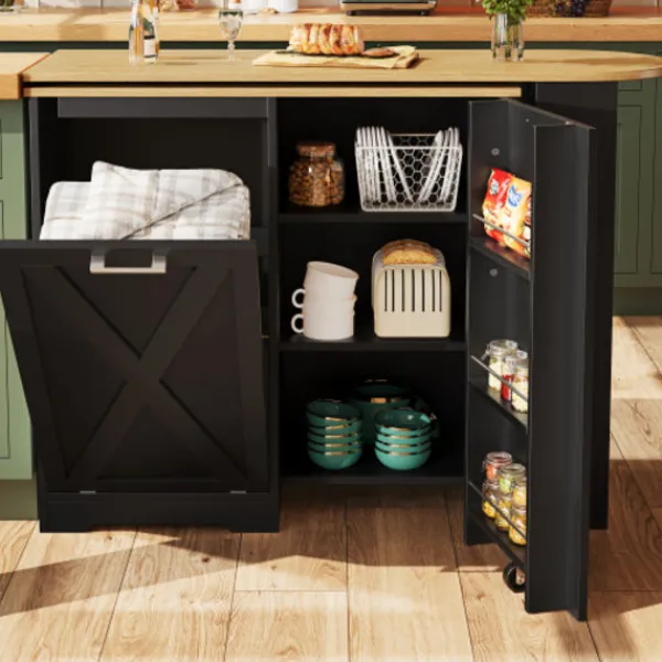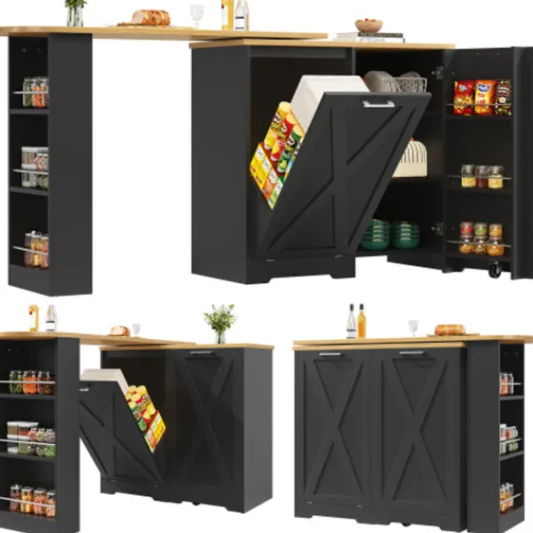 Multifunktionell förvaring: Lägg till sidohyllor och använd sidoutrymmet på stativet för att förvara vanliga föremål (som koppar, recept, små verktyg) för enkel åtkomst. Den unika fällbara dörrdesignen skiljer sig från den konventionella platta dörren, som tar upp plats: när du öppnar dörren behöver inte det främre rummet reserveras, och även små lägenheter kan öppnas och stängas enkelt