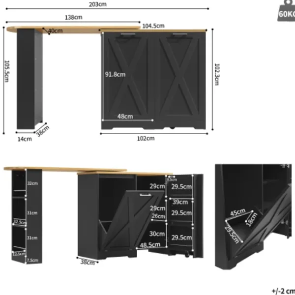 Produktmått: längd 138 cm, utdragbar till 203 cm, bredd 38 cm, höjd 105,5 cm. Detta skåp är perfekt för att organisera några av dina hemtillbehör. Den har en unik och vacker form, perfekt för att dekorera ditt hem!