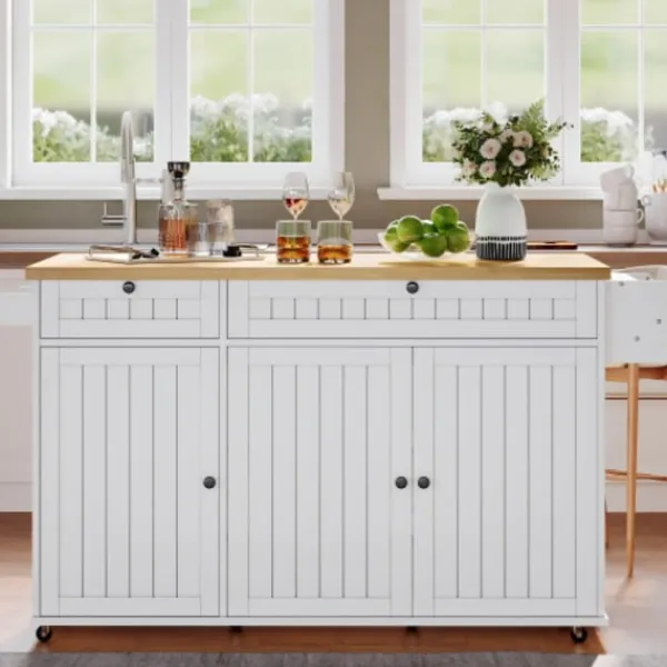 Allt-i-ett-förvaring: Inkluderar lådor, skåp, en kryddhylla och en handdukshängare; justerbara hyllor möjliggör enkel organisering.