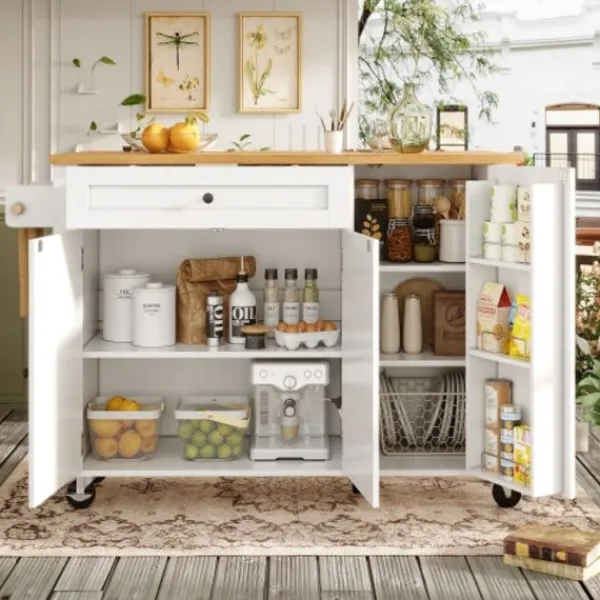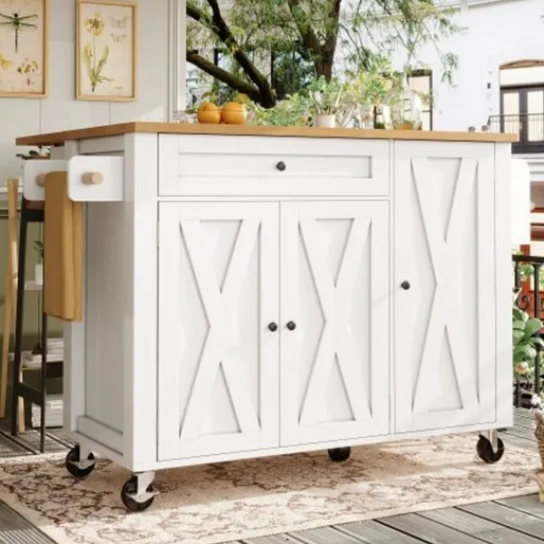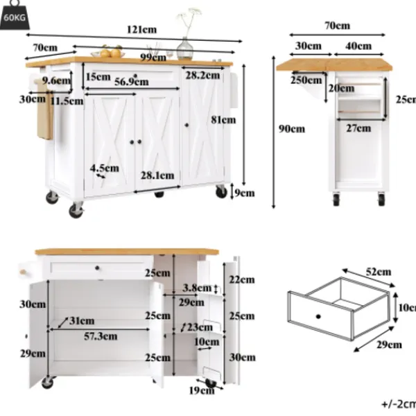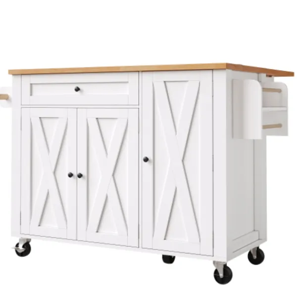Mobil köksö: Utrustad med fem 360-graders svängbara hjul, varav två är låsbara, för sömlös förflyttning mellan kök, matsal, vardagsrum och andra utrymmen.