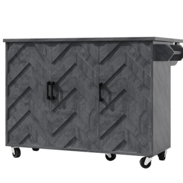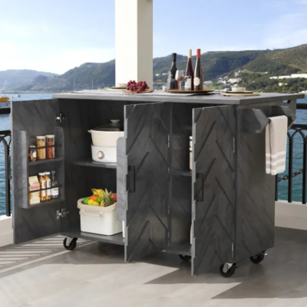 Estetisk design: Skåpet är helt färdigt i ett grått mönster, vilket ger det ett rent, elegant utseende. Dörrpanelerna med sitt 3D-vågmönster erbjuder en distinkt design och en uppfriskande visuell upplevelse. Det smälter sömlöst in i rustika miljöer, balkonger, vardagsrum, matsalar och mycket mer.