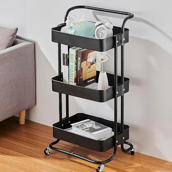 Köksö>Köksvagn Köksställ, med Handtag och Låsbara Hjul, Lämplig för Badrum och Kök, Svart