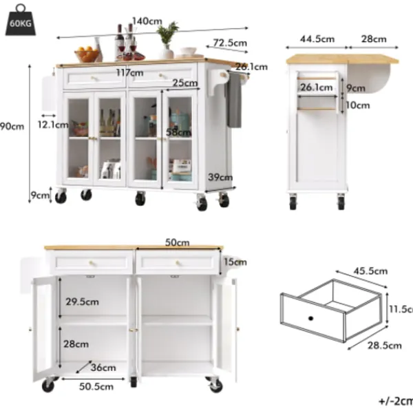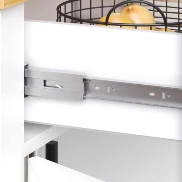 Flexibel utdragbar topp: Justerbar bordsskiva med en trähylla och sidoförvaring. En stor låda ger ytterligare förvaringsutrymme – perfekt för användning som en skänk.
