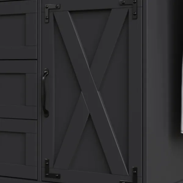 Högkvalitativa och hållbara material: Tillverkad av MDF-paneler med robusta metallgångjärn och dekorativa metalldetaljer. Garanterad vardagsanvändbarhet och lång livslängd.