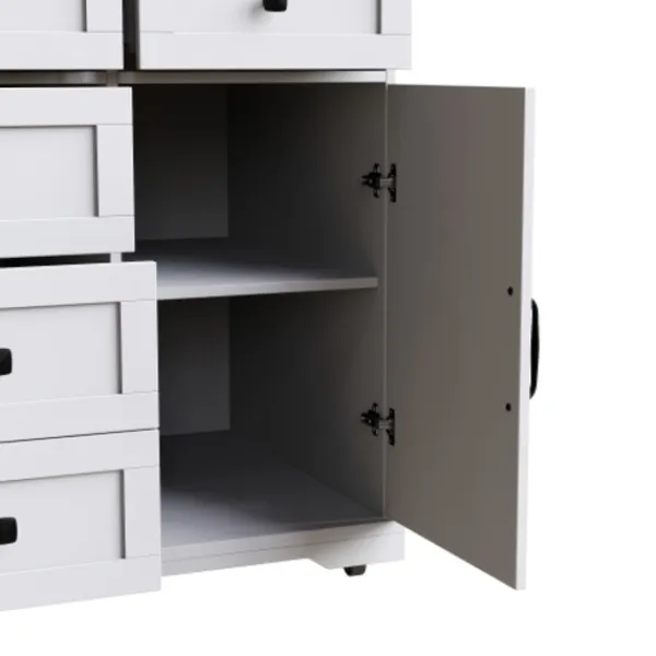 Högkvalitativa och hållbara material: Tillverkad av MDF-paneler med robusta metallgångjärn och dekorativa metalldetaljer. Garanterad vardagsanvändbarhet och lång livslängd.