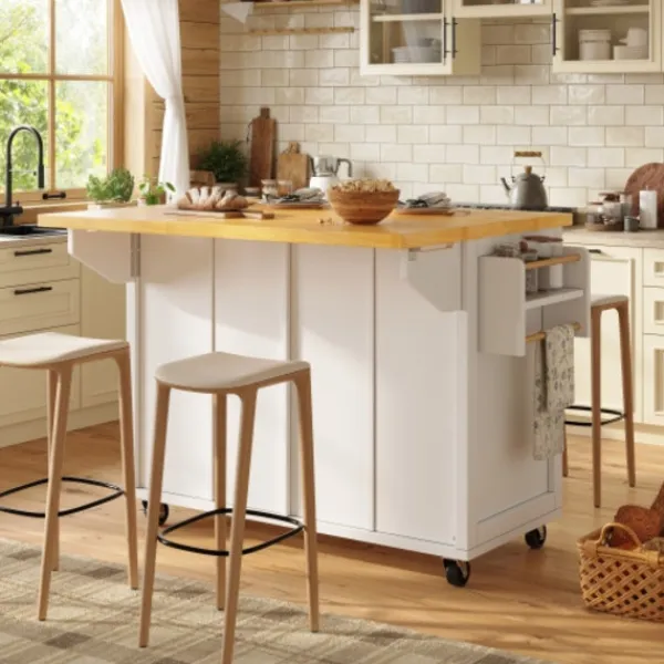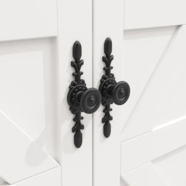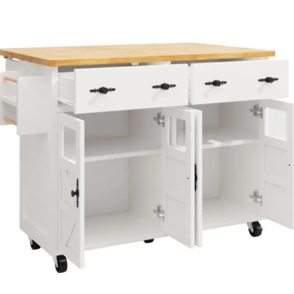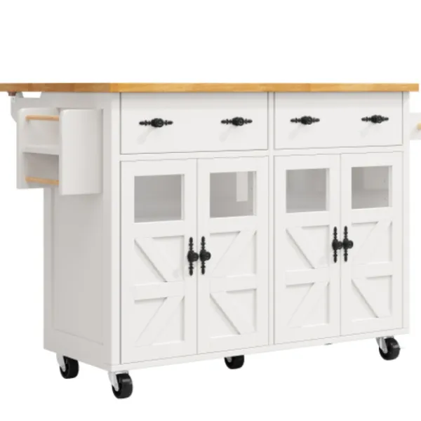 Rymlig multifunktionell vagn: Kombinerar öppna hyllor och stängda lådor. Fungerar som en mobil barvagn eller en praktisk skänk för kök och vardagsrum.