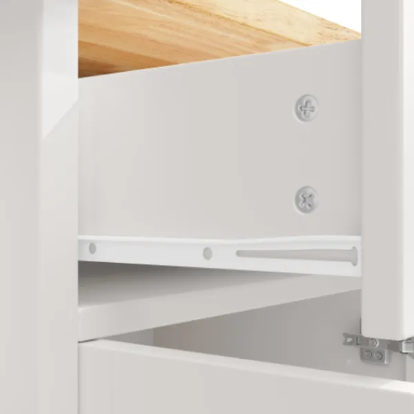 Flexibel utdragbar topp: Justerbar bordsskiva med en trähylla och sidoförvaring. En stor låda ger extra förvaringsutrymme – perfekt för användning som skänk.