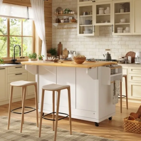 Mobil köksö: Utrustad med fem 360-graders svängbara hjul, varav två är låsbara, vilket möjliggör sömlös förflyttning mellan kök, matsal och vardagsrum.