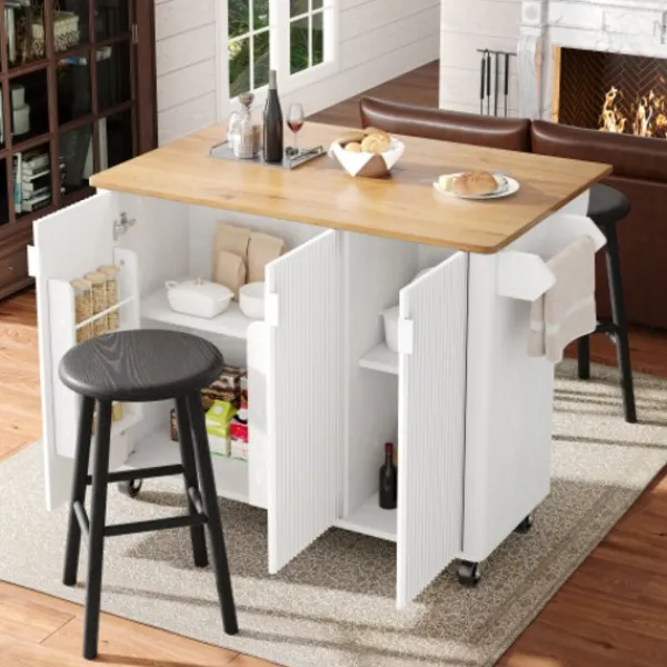 Mobil köksö: utrustad med fem 360-graders svängbara hjul, varav två kan låsas för att möta förändringar i kök, matsal, vardagsrum och andra scener.