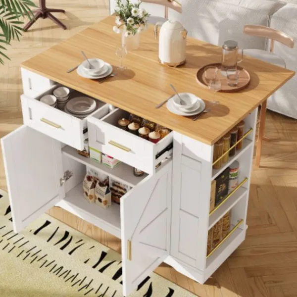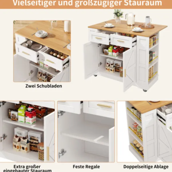 Rymligt förvaringsutrymme: med två praktiska lådor, extra stort förvaringsfack, solida hyllor och dubbelsidiga förvaringsutrymmen för korrekt förvaring av köksredskap.