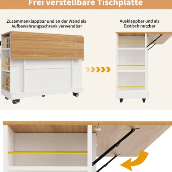 Justerbar bordsskiva: Bordsskivan kan fällas mot väggen eller tas bort som ett matbord – multifunktionell för olika användningssituationer.