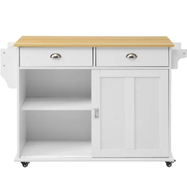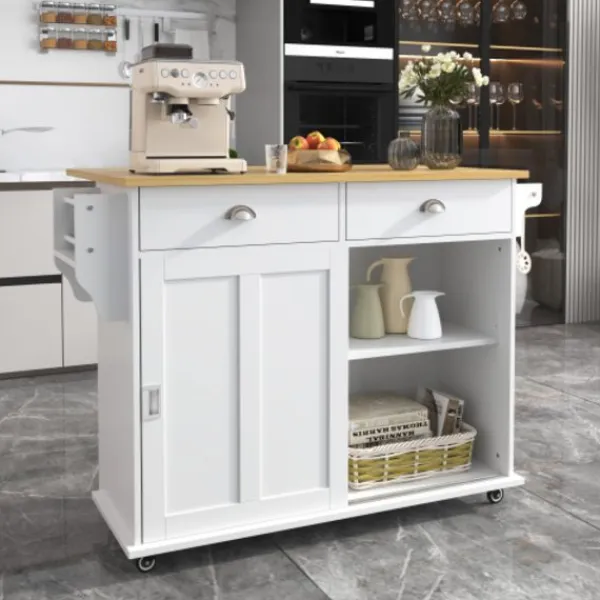 5. Fast förvaringsö: Denna köksö är också utrustad med fyra massiva träfötter. Om du inte behöver flytta detta skåp kan du byta ut rullarna mot skåpfötterna.