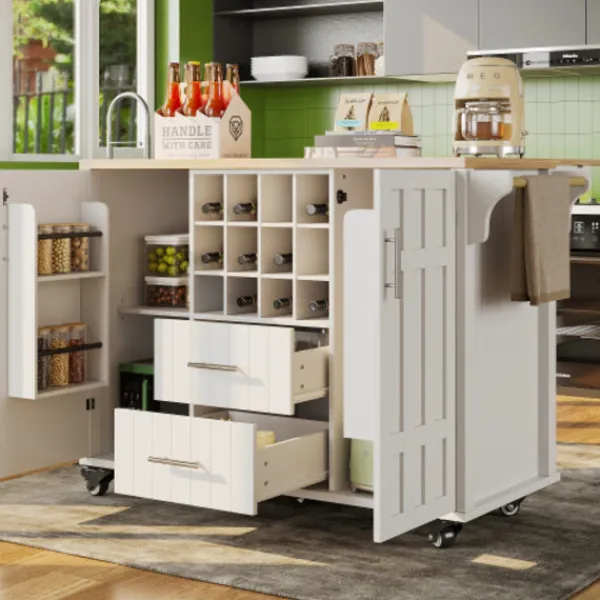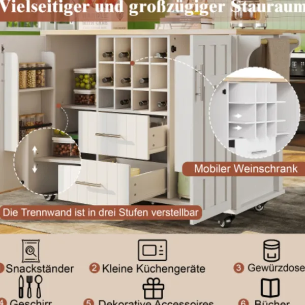 Det multifunktionella, mobila vinskåpet ökar livskvaliteten. Produkten är utrustad med en praktisk handdukshängare som möjliggör upphängning av handdukar, dukar eller andra tygföremål. Denna design erbjuder inte bara ytterligare förvaringsmöjligheter, utan underlättar också åtkomst till föremål, så den är särskilt lämplig för användning i köket eller badrummet.