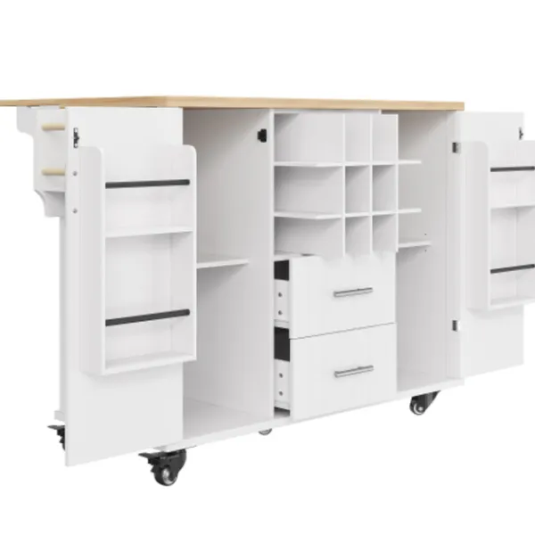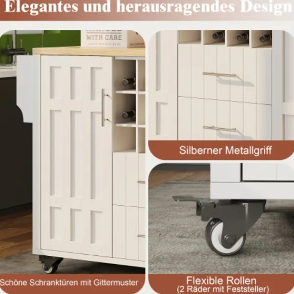 Produktstorlek: Denna serveringsvagn är 140 cm lång, 40 cm bred och 94,5 cm hög. Denna köksvagn har fällbara sidor som kan öppnas för att användas som matbord. Den totala längden på de hopfällda sidorna är 65 cm i hopfällt läge.