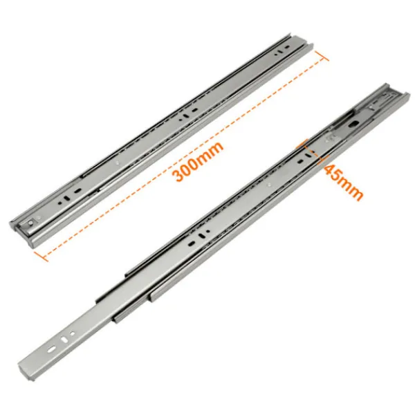 Trefaldiga lådskenor kan förlängas helt, tysta och friktionsfria, tjockt material är robust och hållbart, lådskenor har självstängning och dämpning för att förhindra fastklämning, lämpliga för sovrum, barnrum, vardagsrum, kök, badrum och kontorsmöbler, idealiska för lådinstallationer.