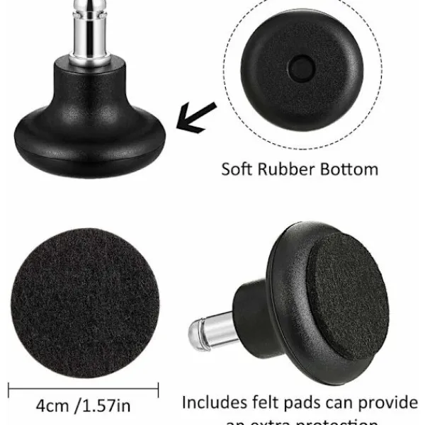 Total glidhöjd: 2 tum total glidhöjd vid installation, lämplig för de flesta små stolsrullar; Denna kontorsstolsglidare kan omvandla en rullande kontorsstol till en fast stol utan att förlora stolens höjd. Insatsstamdimension: Standard 7/16 x 7/8 tum (11 x 22 mm) greppringmonteringsstam för att fästa på de flesta standardstols- eller stolsbaser, rätt storlek kan uppfylla dina behov; Se storleken noggrant innan du köper för att bekräfta lämpligt köp. Klockglidstorlek: Dessa klockglid har en bottenbredd på 2 tum och en total glidhöjd på 2 tum, liknande de flesta små stolsrullar; Vikten på varje glid är 110 lbs, 5 stycken glid stöder 550 lbs totalt. Praktisk design: med stark nylonstrukturell gliddesign, kan stödja mer vikt på de flesta kontorsstolar, verkstadsstolar eller andra stolar etc., svart färg kan också enkelt matchas med olika stolar; Plastbotten är inte lätt att glida. Skydda ditt golv: klockglidbytet har en hård plastbotten med filtdynor som bättre kan skydda ditt mjuka golv