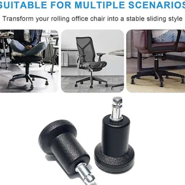 Lätt att AnvändaDra först bort de gamla kontorsstolshjulen från stolens undersida. Sätt nu helt enkelt in de nya glidstängerna i fotfästena och tryck tills de sitter säkert på plats.