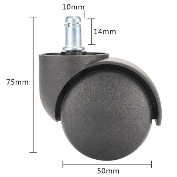 Stamdimensioner: 3/8″ x 7/8″ (10 mm x 22 mm); passar till kontorsstolar med 10 mm x 22 mm. Stammen är mindre än vanliga 11 mm stamhjul.