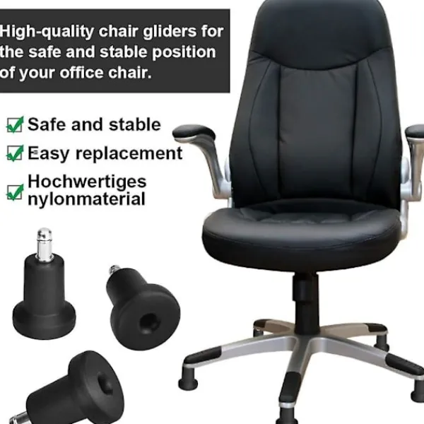 Enkel utbyte: Byt ut gamla och slitna rullar, enkelt utbyte, ta bort gamla rullar/glidplattor och sätt in nya glidplattor. Med dessa kontorsstolsglid kan rullande kontorsstolar omvandlas till en stationär stol utan att förlora stolens höjd.
