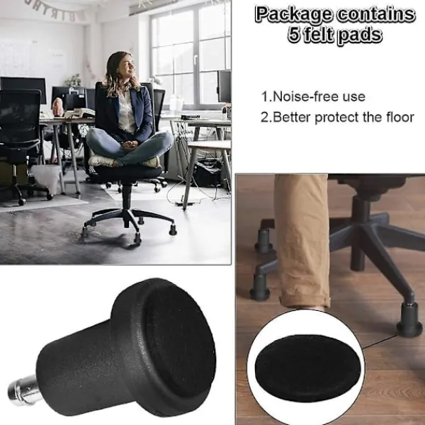 Golvglidskydd för stolar: Dessa kontorsstolsglid passar de flesta kommersiellt tillgängliga stolsrullar och är lämpliga för de flesta svängbara eller kontorsstolar eftersom de är fasta, vilket sparar utrymme och pengar och skyddar golvet.