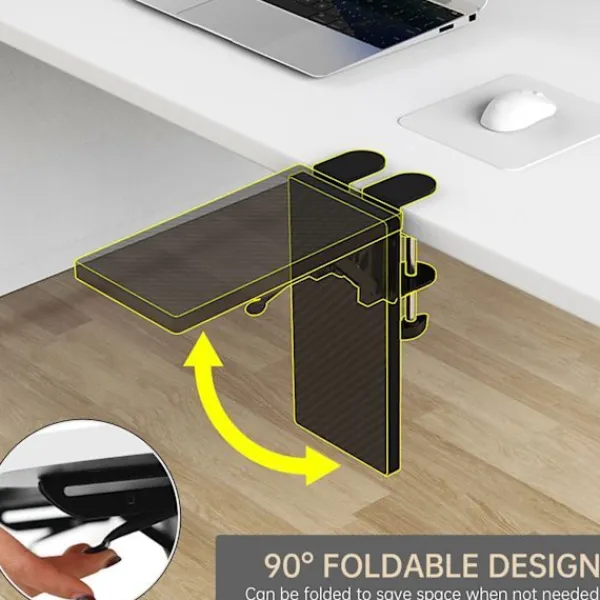 【Fantastisk utrymmesbesparing】 Du kan fälla ihop den när du inte behöver använda den, vilket sparar utrymme. När den används på jobbet kan du placera fler föremål som tangentbord, anteckningsbok, mus etc. för att öka användningsutrymmet.