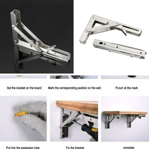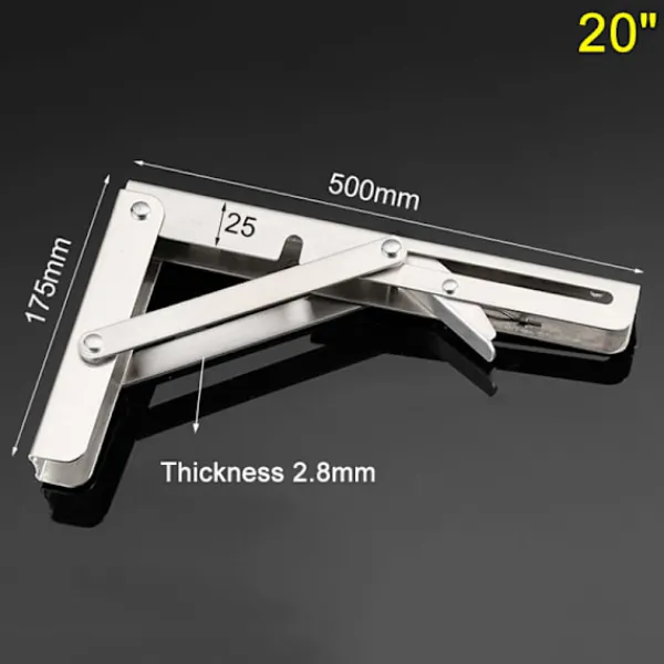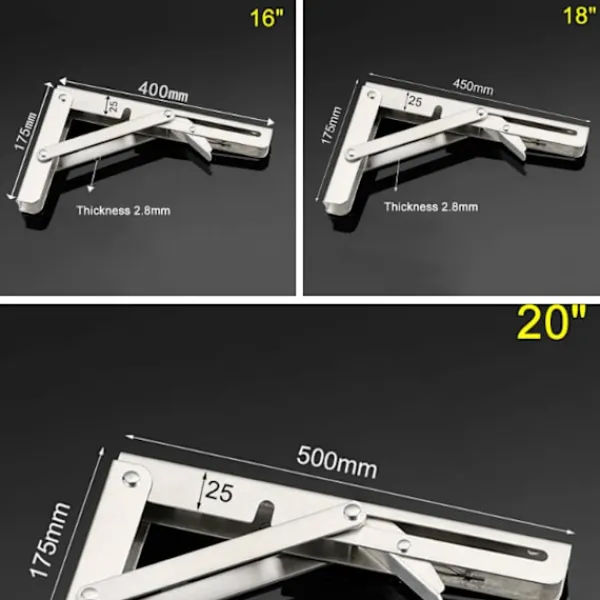 Funktioner: Förtjockad design och gjord av förstklassiga material gör den hård och hållbar. Stabil triangulär konstruktion för pålitligt stabilt stöd. Bred användning, kan monteras på väggen och spara mer utrymme för dig i ditt kök, butik, butiker, verkstäder, båtar , husbil, bakgård, släpvagn, rum, kök, balkong, badrum, etc.Lätt att installera, du kan göra klart det på några minuter. Tillräckligt för att användas som bokhylla, kökshylla, mässställ, trädgårdshylla, yttre väggfästen etc. .Specifikationer: Material: Rostfritt stål Storlek: 8 tum/10 tum/12 tum/14 tum/16 tum/18 tum/20 tum Tjocklek: 2,8 mm Lastvikt: 200 kg Paketlista: 2 st x hopfällbart stativ