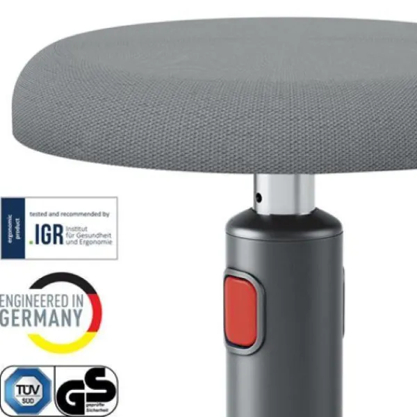 Leitz Ergo Cozy 2-i-1 ergonomisk pall, justerbar från 46 till 79 cm, för att enkelt flytta från sittande till stående. Rundad bas för att svänga och svänga, stärka ryggen och uppmuntra rörelse. Slitstark skumsits med 3D-nätöverdrag, ger komfort och stöd. Lätt, stabil på alla höjder, med halkfri bas, IGR-, TÜV- och GS-certifierad. Elegant och hållbar design, garanterad i 5 år.