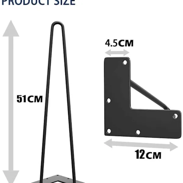 Design: Modern design från mitten av århundradet. Renovera enkelt gamla bord. 5 förborrade hål i monteringsplattan för enkel och snabb montering. Levereras fritt med 20 st skruvar, 4 st vågformade gummigolvskydd kan skydda dina golv från skador eller som en extra stabilisator för det vingliga bordet. Kraftigt kallvalsat järn, stark svetsning ger ett mycket robust konsolbord, ingen rörelse alls.