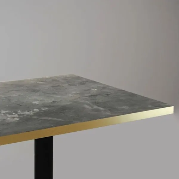 Ståbord för kök, matsalar eller restauranger, för inomhusbruk. Denna artikel finns också i standardhöjd. Europaprodukt av hög kvalitet och omsorgsfulla detaljer: skivan tillverkad i Frankrike, foten tillverkad i Italien. Underrede i thermolackerad gjutjärn – svart. Skiva i fuktskyddat träfiberskiva med laminatfolie och kanter i PVC i mässingsfärg. Underrede: bas 42×42 cm, pelare Ø 7.6 cm, vikt 21 kg, höjd 110 cm. Levereras med justerbara fötter för ojämna golv. Skiva: 60 x 60 cm, tjocklek 2,9 cm, vikt 6,5 kg, kapacitet 2 personer. Undersidan av skivan i vit melamin. Skivan förborrad med insatser för perfekt montering på underredet. Levereras i kit, enkel montering, skruv ingår. Mycket eftertraktad material i storkök för sina egenskaper: hygien och hållfasthet. Lättskött: rengöring med lätt tvålad vatten eller mild desinfektionsmedel, utan rengöringsmedel eller slipande medel. Produkt 100% europeisk.