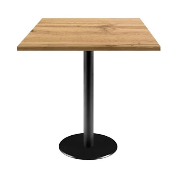 Bord för kök, matrum eller restauranger, för inomhusbruk. Denna artikel finns också som ståbord. Europaprodukt av hög kvalitet och noggrant utförande: skivan tillverkad i Frankrike, foten tillverkad i Italien. Underrede i thermolackerad gjutjärn – svart. Skivmaterial av fuktskyddad spånskiva med laminerad yta och kanter i PVC. Underrede: bas Ø 40 cm, kolumn Ø 6 cm, vikt 13 kg, höjd 73 cm. Levereras med justerbara fötter för ojämna golv. Skiva: 70 x 70 cm, tjocklek 2,9 cm, vikt 8,9 kg, kapacitet 2/3 personer. Undersidan av skivan i vit melamin. Skivan är förberedd med insatser för perfekt fästning till underredet. Levereras i kit, lättmonterad, skruvar ingår. Mycket efterfrågad material inom storkök för sina egenskaper: hygien och hållbarhet. Lättskött: rengöring med lätt såpavatten eller mild desinfektionsmedel, utan rengöringsmedel eller slipmedel. 100% europeisk produkt.
