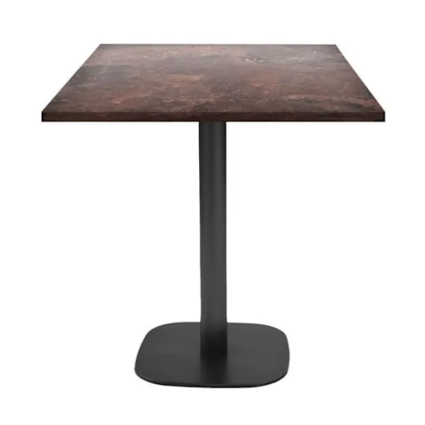 Bord för kök, matsalar eller restauranger, för inomhusbruk. Denna artikel finns också som stående bord. Europeisk produkt av hög kvalitet och noggrant utförande: skiva tillverkad i Frankrike, fot tillverkat i Italien. Stativ av pulverlackerad gjutjärn – svart. Skiva av fuktbeständig spånskiva med laminering och kanter i PVC. Fot: bas 42×42 cm, kolonn Ø 7.6 cm, vikt 15 kg, höjd 73 cm. Levereras med justerbara fötter för ojämna golv. Skiva: 70 x 70 cm, tjocklek 2,9 cm, vikt 8,9 kg, kapacitet 2/3 platser. Undersidan av skivan i vit melamin. Skivan är förborrad med insatser för perfekt fästning till stativet. Levereras i kit, enkel montering, skruvar ingår. Mycket eftertraktat material inom storkök för sina egenskaper: hygien och hållbarhet. Lätt att underhålla: rengöring med lätt såpavatten eller mild desinfektion, utan rengöringsmedel eller slipmedel. 100% europeisk produkt.