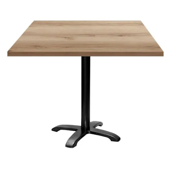 Fyrkantigt bord 90 x 90 cm i ek Delano, perfekt för matsal eller kök. Tillverkat i Europa, det kombinerar kvalitet och samtida design. Enkel montering, ben i svart gjutjärn, bordsskiva i fuktskyddad spånskiva. Rymmer 4 personer, enkel att sköta. Perfekt för inomhusbruk.