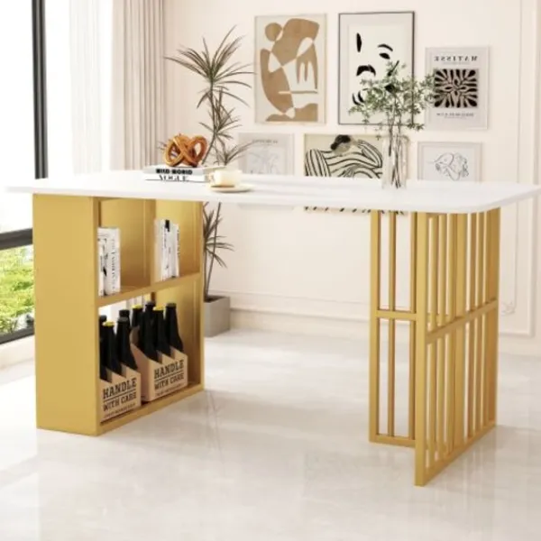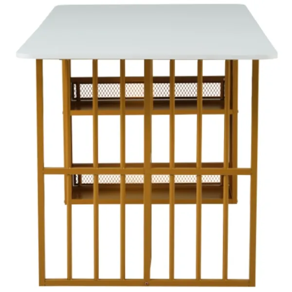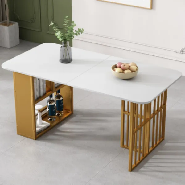 【Förvaringsutrymme】 Förvaringsutrymmet är placerat bredvid bordsbenen och erbjuder extra förvaringsutrymme för bekväm förvaring av servetter, bestick eller andra matvaror. Denna smarta design är både vacker och praktisk och gör bordet mer mångsidigt.