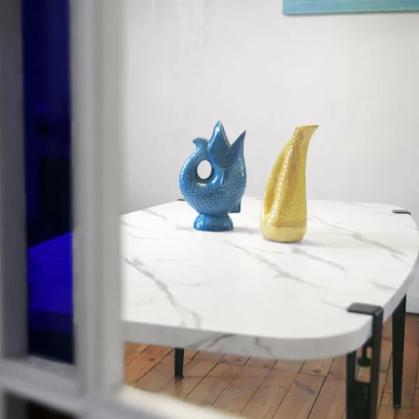 Bord för kök, matrum eller restauranger, för inomhusbruk. Denna artikel finns också i kvadrat 70 x 70, 90 x 90, rektangulär 120 x 70, 160 x 80 och rund Ø 110 cm. Europaprodukt av hög kvalitet och fin finish: skivan tillverkad i Frankrike, ben tillverkat i Italien. Underrede i thermolackerad gjutjärn – svart. Skiva i fuktbeständig spånskiva med laminatfanér och kanter i PVC. Underrede: bas 56×56 cm, kolonn Ø 7.6 cm, vikt 12,7 kg, höjd 71 cm. Levereras med justerbara fötter för ojämna golv. Skiva: Ø 80 cm, tjocklek 2,9 cm, vikt 9,1 kg, kapacitet för 2 personer. Undersidan av skivan i vit melamin. Skivan är förborrad med insatser för perfekt fäste vid underredet. Levereras i kit, lätt att montera, skruvar ingår. Mycket eftertraktat material inom storkök för dess egenskaper: hygien och hållbarhet. Lättskött: rengöring med lätt tvålad vatten eller mild desinfektionsmedel, utan rengöringsmedel eller slipmedel. 100% europeisk produkt.