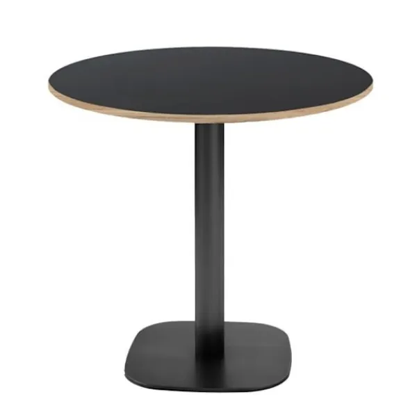 Bord för kök, matsalar eller restauranger, för inomhusbruk. Denna artikel finns också i kvadrat, rektangulär och ståbord. Europaprodukt av hög kvalitet och noggrant utförande: skiva tillverkad i Frankrike, fot tillverkat i Italien. Ben i thermolackerad gjutjärn – svart. Skiva i hydrofob spånskiva med laminatoverdrag och kanter i PVC i träimitation. Benställning: bas 42×42 cm, pelare Ø 7,6 cm, vikt 15 kg, höjd 73 cm. Levereras med justerbara fötter för ojämna golv. Skiva: Ø 70 cm, tjocklek 2,9 cm, vikt 7 kg, kapacitet för 2 personer. Undersidan av skivan i vit melamin. Skivan är förborrad med infällningar för perfekt fästning till benställningen. Levereras i kit, enkel montering, skruvar ingår. Mycket eftertraktat material inom storkök för sina egenskaper: hygien och hållbarhet. Lättskött: rengöring med lätt tvålat vatten eller milt desinfektionsmedel, utan detergent eller abrasiv. Produkt 100% europeisk.