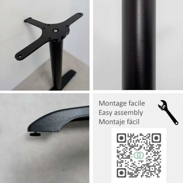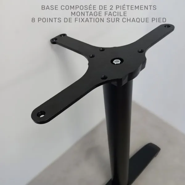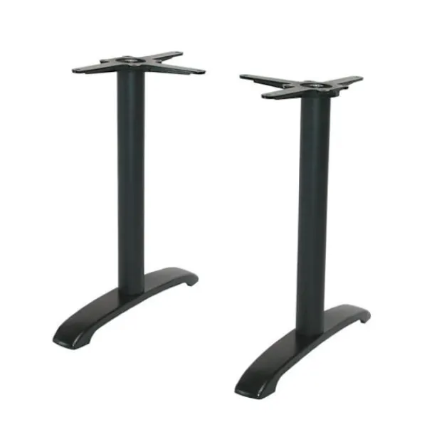 Bashöjd 71 cm för rektangulära bord. För intensiv professionell inomhusbruk. Pulverlackerat gjutjärn – svart. Består av 2 ben med baser på 63×8 cm, pelare Ø 7,6 cm, totalvikt 20,2 kg. Rekommenderas för brickor max 160 x 90 cm. Justerkuddar för ojämna golv. Mycket enkel montering. Tillverkad i Italien.