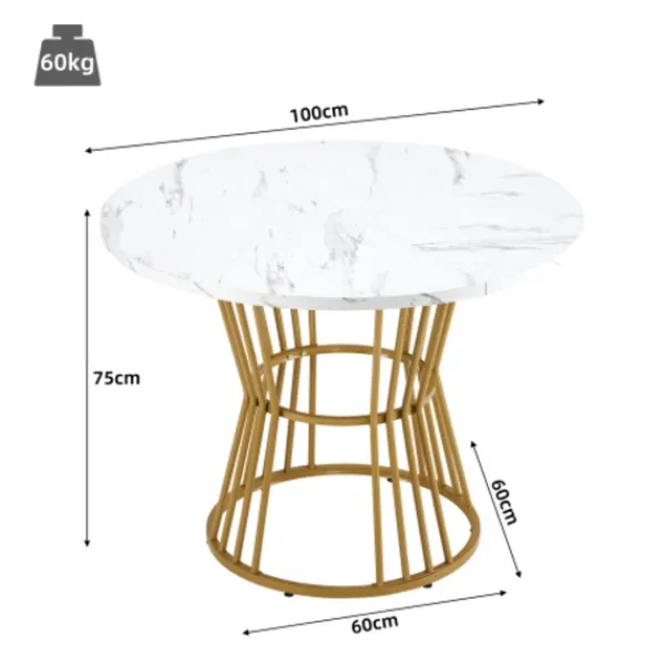 Unik design: Materialet på bordsskivan är MDF. Den runda arbetsytan har en diameter på 100 cm och en höjd på 75 cm, med ett modernt marmormönster och ett unikt och stilfullt utseende.