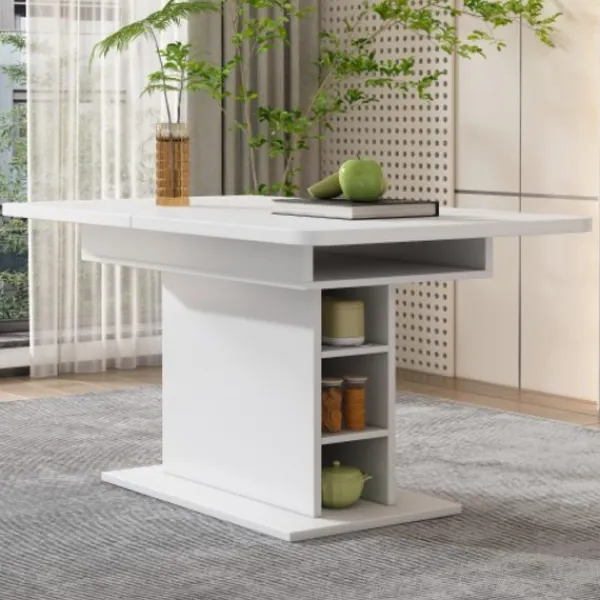Hög rumutnyttjande: Detta matbord maximerar rumutnyttjandet genom att använda mittkolumnen och flera vänster- och högerblocksdesigner. Användare kan organisera och förvara föremål intelligent, vilket gör hela matplatsen snygg och prydlig.