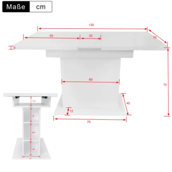 Flexibel infällbar funktion: Den unika infällbara designen möjliggör en enkel förändring av bordsskivans längd och storlek, vilket skapar mer matplats och fullt ut återspeglar matbordets flexibilitet och mångfald. Denna design kan anpassas till olika människors behov och gör familjelivet bekvämare.