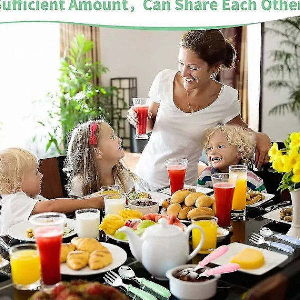 1. Detta set har tillräckligt med delar för att kunna användas växelvis under måltider. 2. Varje set med barnbestick är anpassat för ditt barns lilla mun och fingrar. 3. Lämpligt för alla åldrar och kön; juniorer, småbarn, förskolebarn och barn i skolåldern. 4. Handtag med släta kanter, gafflar har rundade spetsar för barnsäkerhet. 5. Perfekt för födelsedagar, jul och andra speciella evenemang; de är också bra för förskolor, skolor och daghem, sommarläger etc.