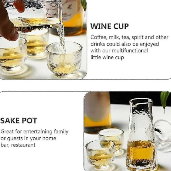 Sake Set Glas Du kan hålla cirka 250 ml sake med detta japanska sake set. Söta Koppset Du kan servera 40 ml sake i dessa klara sake koppar med tung botten, perfekt storlek för en shot. Färg Transparent Storlek 12,5×5,5cm Sake Set Glas Du kan hålla cirka 250 ml sake med detta japanska sake set. Söta Koppset Du kan servera 40 ml sake i dessa klara sake koppar med tung botten, perfekt storlek för en shot. Multifunktion Den multifunktionella lilla vinkoppen är lämplig för kaffe, vatten, te, mjölk och andra drycker. Nästa sida