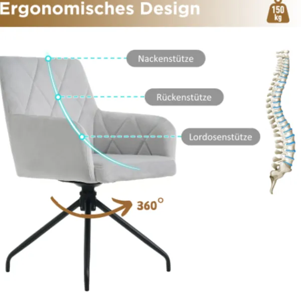 360° stoldesign: Denna design erbjuder allsidig flexibilitet och gör det möjligt för användaren att fritt växla mellan olika riktningar utan att flytta stolen, vilket är idealiskt för användning i multifunktionella rum som arbetsrum och vardagsrum.