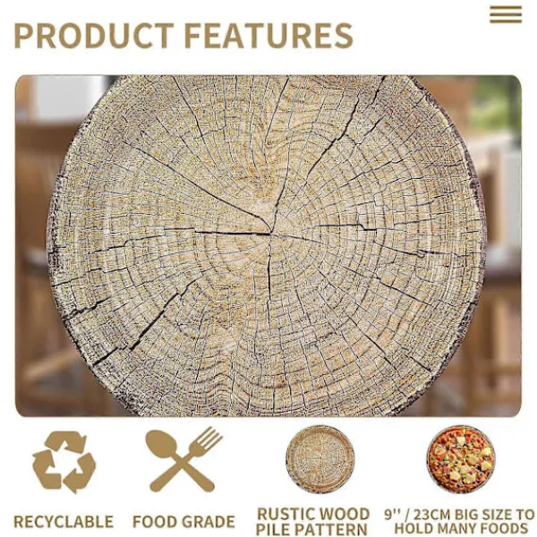 Perfekt För Alla Tillfällen Våra papptallrikar är lämpliga för alla typer av tillfällen, speciellt för babyshower med skogstema, skogsbröllop, camping, födelsedagsfest med älvtema, jakt, country western-temafester för en cowboy eller cowgirl! Träådrings engångspapptallrikar är ditt perfekta val för nästan alla tillfällen.