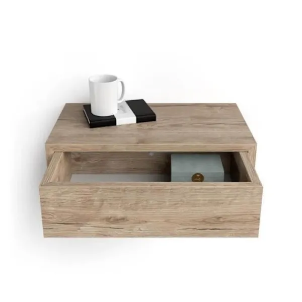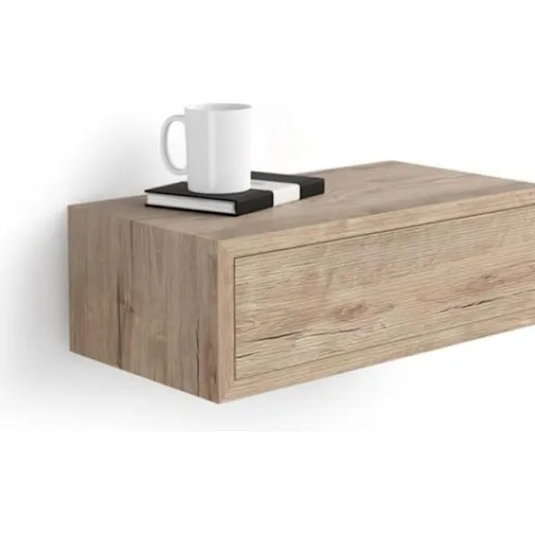 Liten väggmonterad hylla med en extremt användbar låda. Perfekt som svävande sängbord eller hylla för förvaring av föremål i hallen, vardagsrummet eller korridoren. Detta sängbord är mångsidigt och kan placeras ovanpå varandra eller bredvid varandra för att skapa olika möbellösningar.