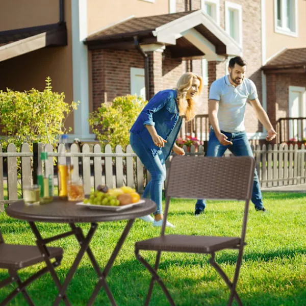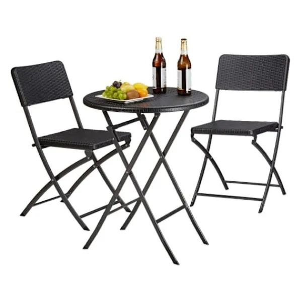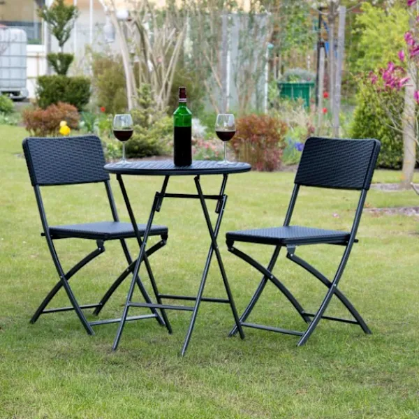 BASTIAN trädgårdsmöbelset kombinerar stil och funktionalitet, vilket förbättrar både utomhus- och inomhusutrymmen. Detta kompakta set innehåller ett bord och två hopfällbara stolar, perfekt för balkonger, trädgårdar eller uteplatser.