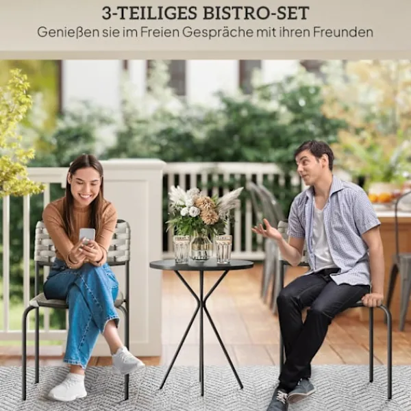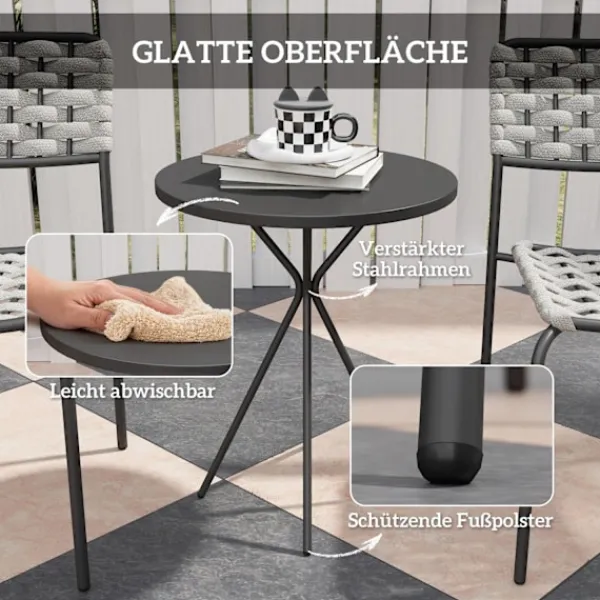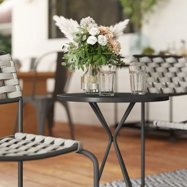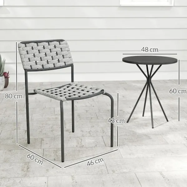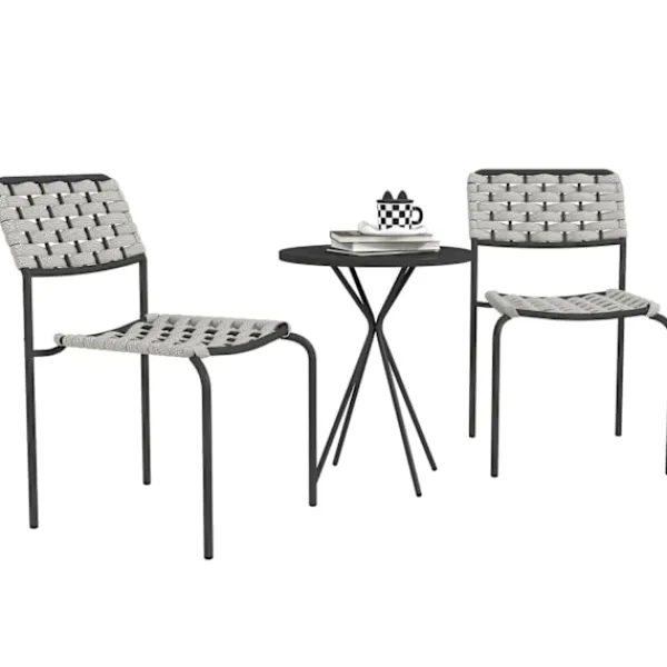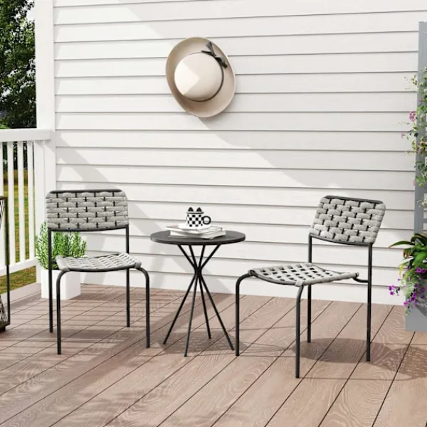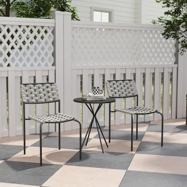 Konstruerad med pulverlackerade stålramar, är detta set byggt för att motstå väder och vind och erbjuder rostbeständighet och långvarig stabilitet. Fotkuddarna på ramarna förbättrar bistrosetets hållbarhet ytterligare samtidigt som de skyddar ditt golv. Det kompakta soffbordet är perfekt för att hålla dina nödvändigheter, vilket gör det till ett mångsidigt tillskott till alla utomhusmiljöer.