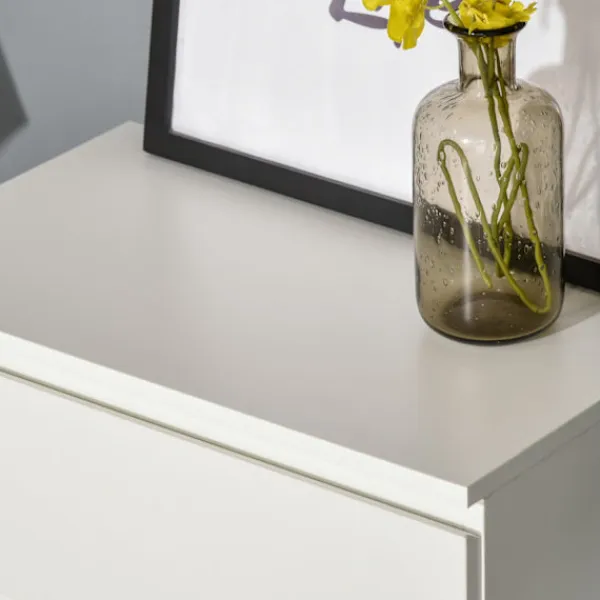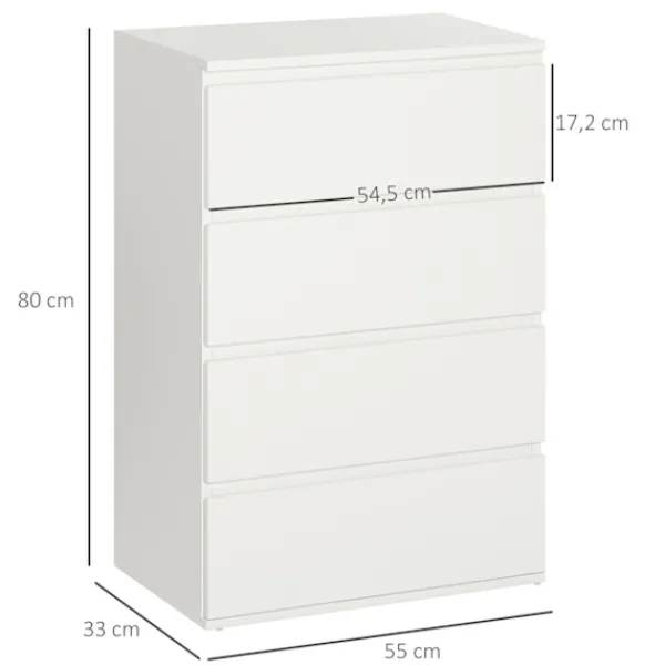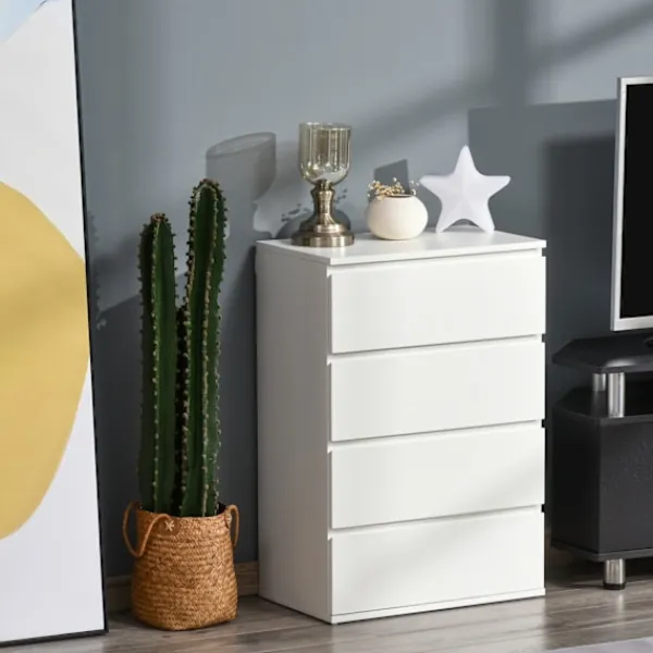Snygg, rymlig och enkel – denna byrå från är den idealiska lösningen för att förvara och organisera dina kläder. Med fyra lådor ger den gott om plats för en mängd olika kläder och andra föremål. Ytan representerar stil – färgen är mångsidig och kan enkelt kombineras med andra färger. Eftersom det inte finns några handtag är varje låda lätt att öppna och stänga.
